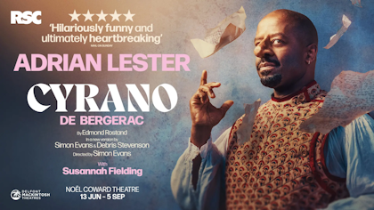 A Great Nose May Be an Index of a Great Soul Starring Olivier Award winner Adrian Lester as Cyrano de Bergerac and Susannah Fielding as Roxane! A five-star run in Stratford-upon-Avon later, and now the RSC’s stellar production of Edmond Rostand’s 1897 play Cyrano de Bergerac is transferring to London’s Noel Coward Theatre!